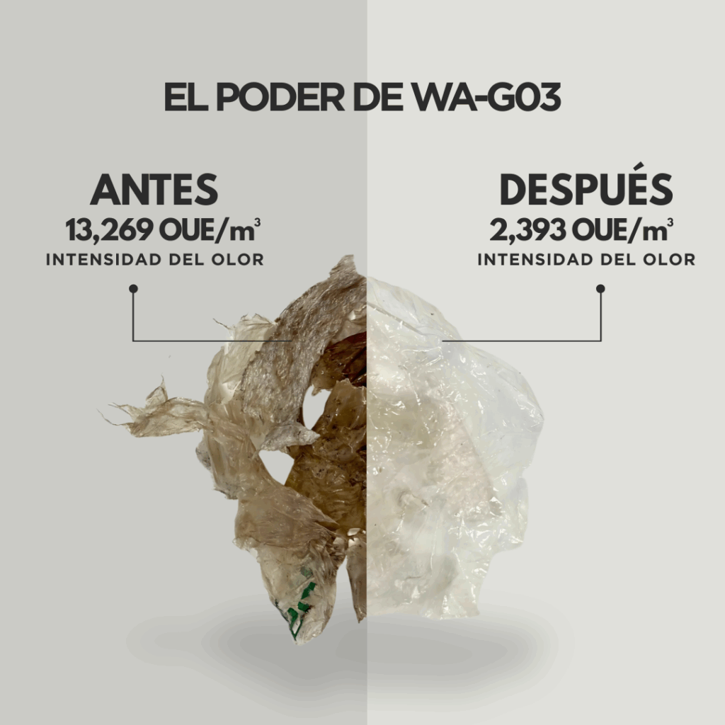 Agente diseñado específicamente para limpiar plásticos de manera eficaz, contribuyendo a eliminar contaminantes y optimizando la pureza y la calidad del material reciclado.WA-G03 - Agente Limpiador de Plásticos para Uso en Contacto Alimentario